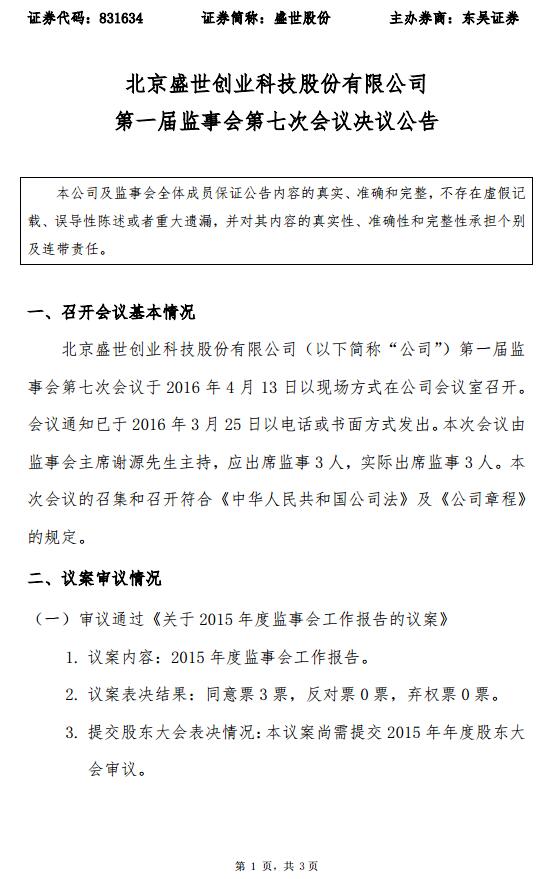 第一届监事会第七次会议决议公告